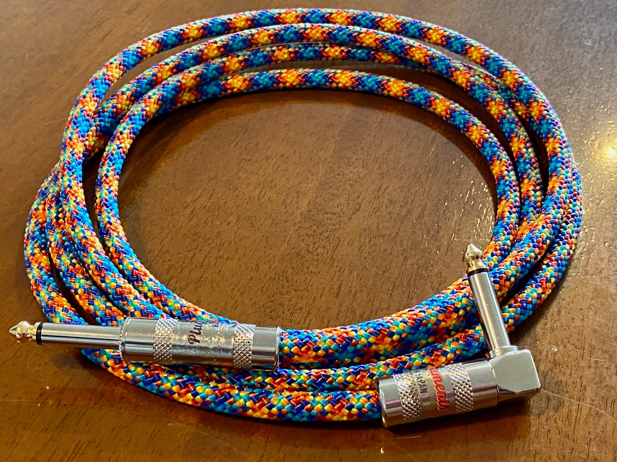 This is a handcrafted guitar cable wrapped with durable paracord for a unique look and flexible handling.