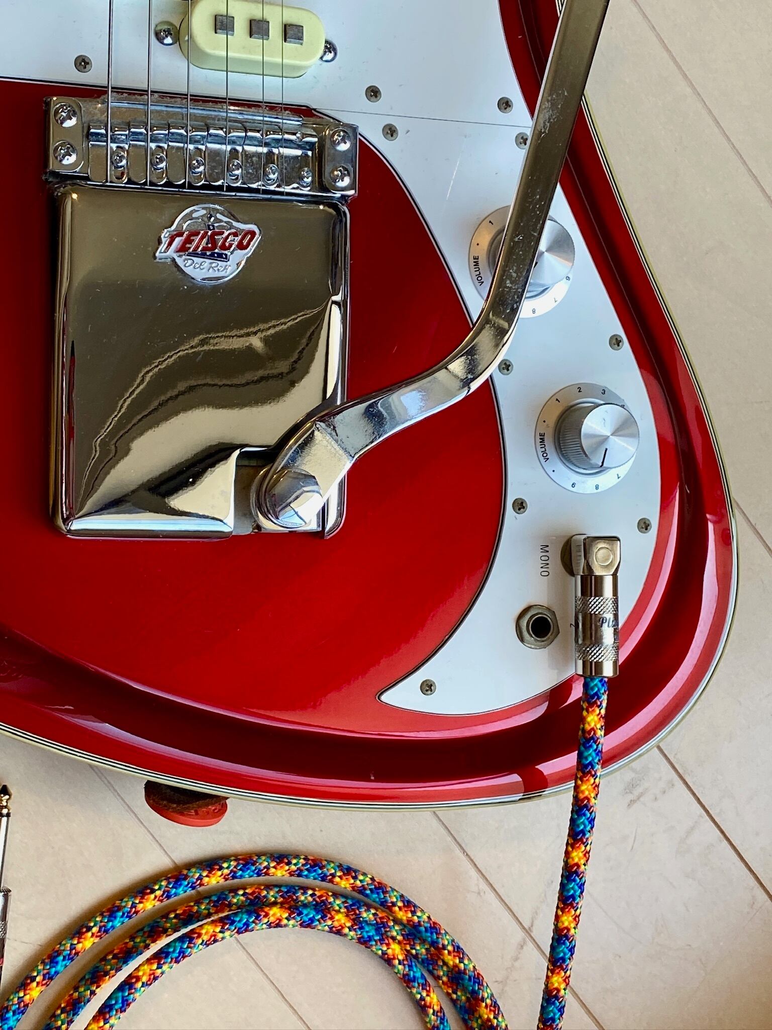 パラシュートコードを利用したオリジナルのギターシールドケーブルで、個性的なルックスと柔軟な取り回しを実現しています。